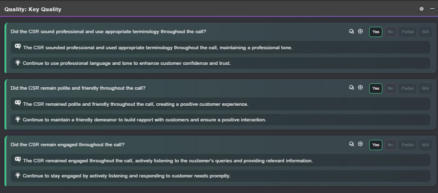 The dynamic scorecard builder helps you create effective audits to extract those insights that traditional call centre and customer service metrics just cannot provide. With advanced levels of customisation available, your scorecards can be fully tailored to your business and values.